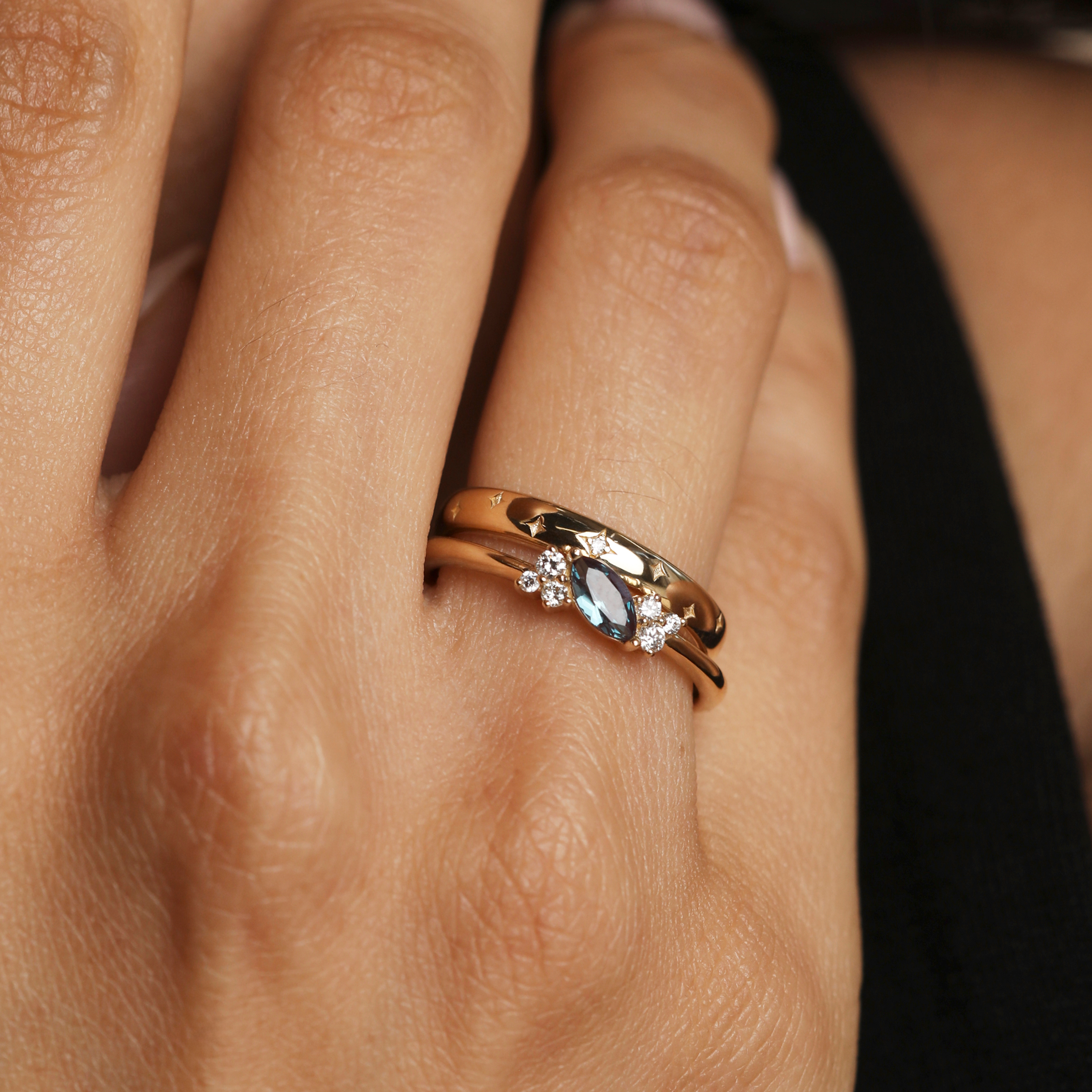 Alexandrite Diamond Milestone Ring in Solid Gold