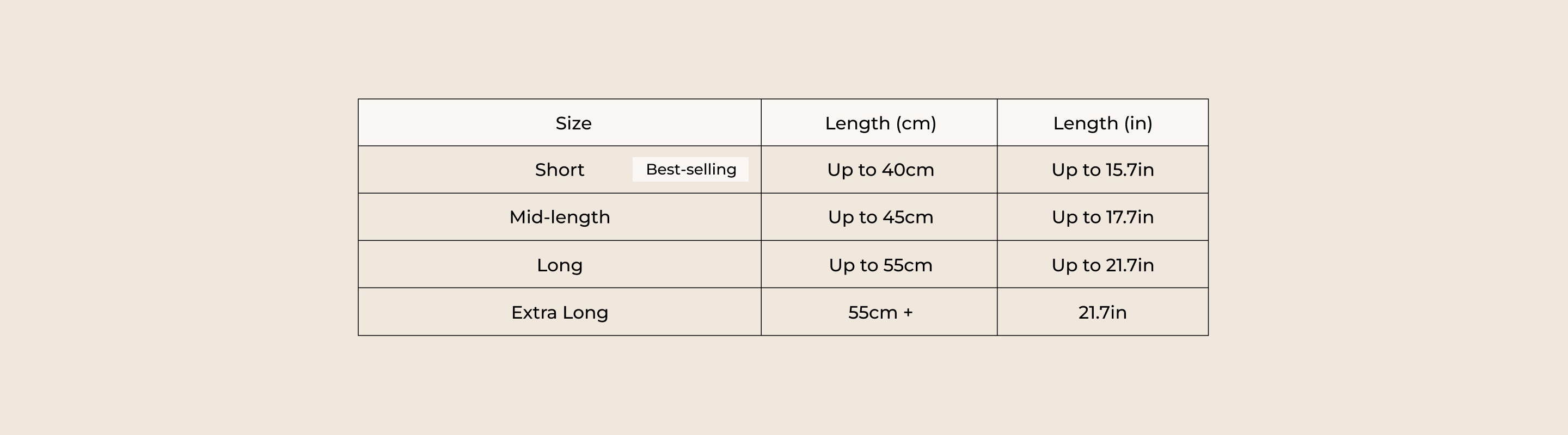 Our chain necklaces, pendant necklaces & cuffs range between lengths of 40cm-55cm. Some come with an extender chain, so you can add up to 5cm to the length of the chain.