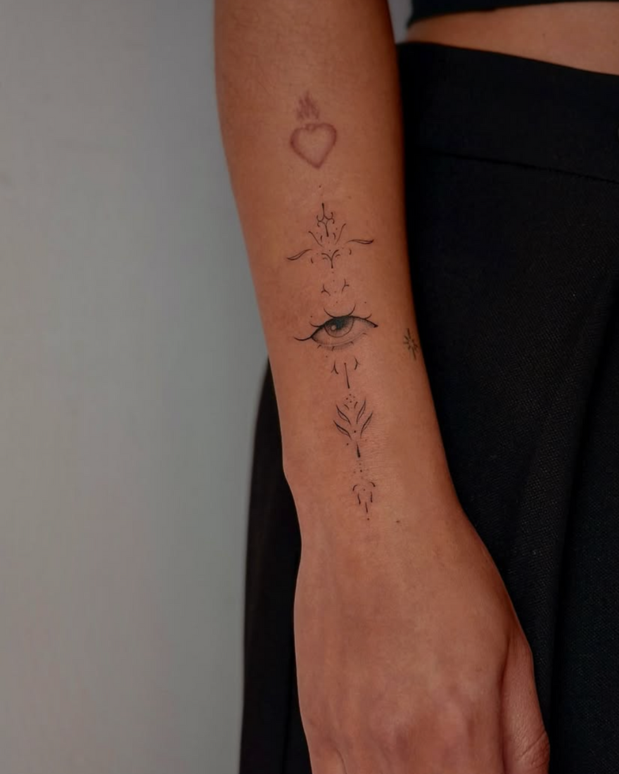 I see tattooing as a collaborative process, working closely with clients to transform their ideas into detailed, meaningful designs. What I enjoy most is taking a client’s idea and adding a whimsical spin to it. I don’t confine myself to one approach - I like to play with different levels of abstraction, from fluid, suggestive shapes to more defined, semi-mini-realistic imagery. Every design is shaped by both my artistic instincts and the unique vision of the person wearing it.