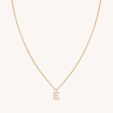 E Initial Pavé Pendant Necklace in Gold