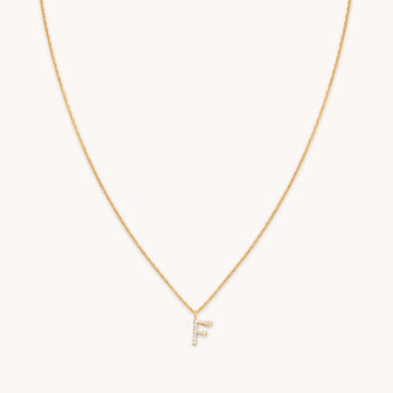 F Initial Pavé Pendant Necklace in Gold