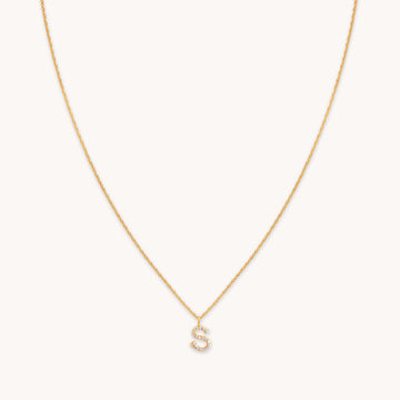 S Initial Pavé Pendant Necklace in Gold