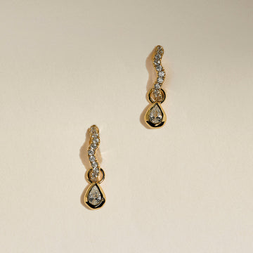 Scalloped Crystal Charm Huggies in Gold